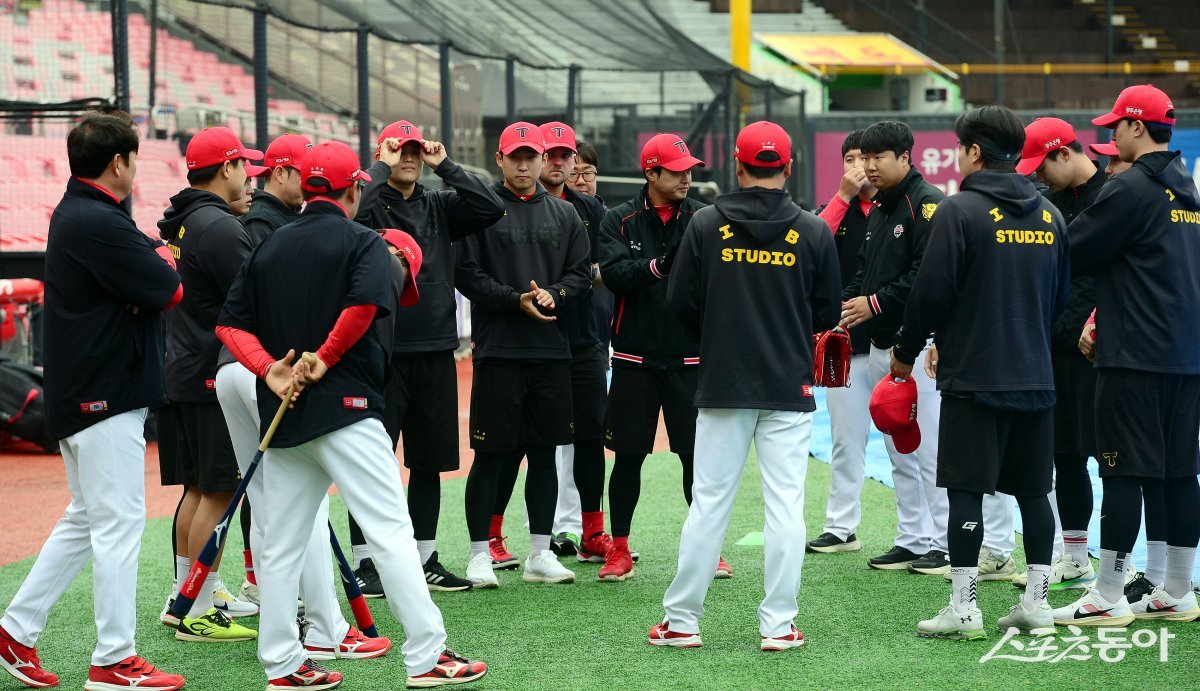 3일 경기도 수원 KT위즈파크에서 ‘2024 신한 SOL 뱅크 KBO리그’ KT 위즈와 KIA 타이거즈의 경기가 열린다. 경기 전 KIA 선수들이 훈련을 준비하고 있다.