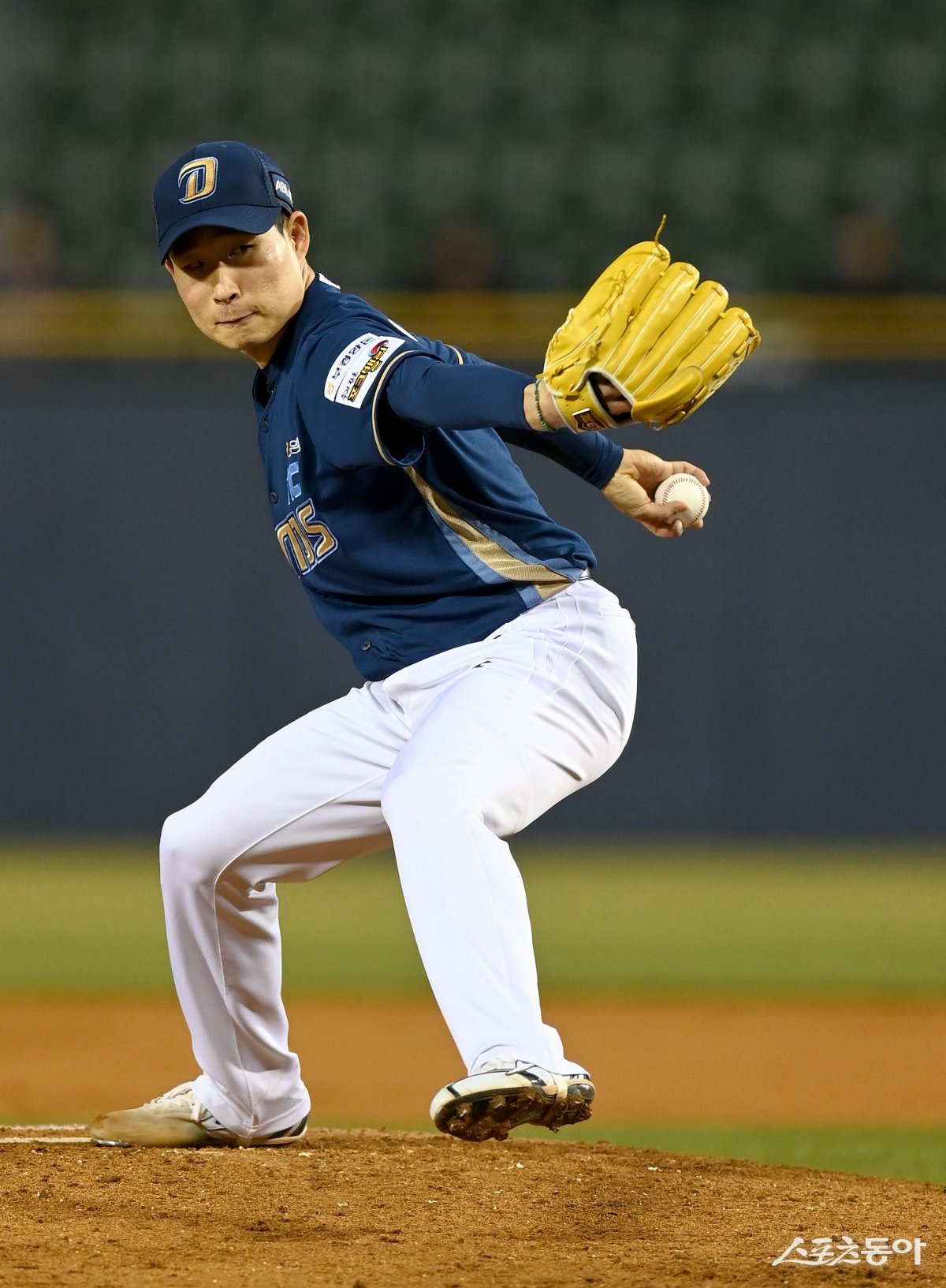 3일 서울 잠실야구장에서 ‘2024 신한은행 SOL뱅크 KBO리그’ NC 다이노스와 LG 트윈스 경기가 열렸다. 선발 투수로 등판한 NC 이재학이 역투하고 있다.