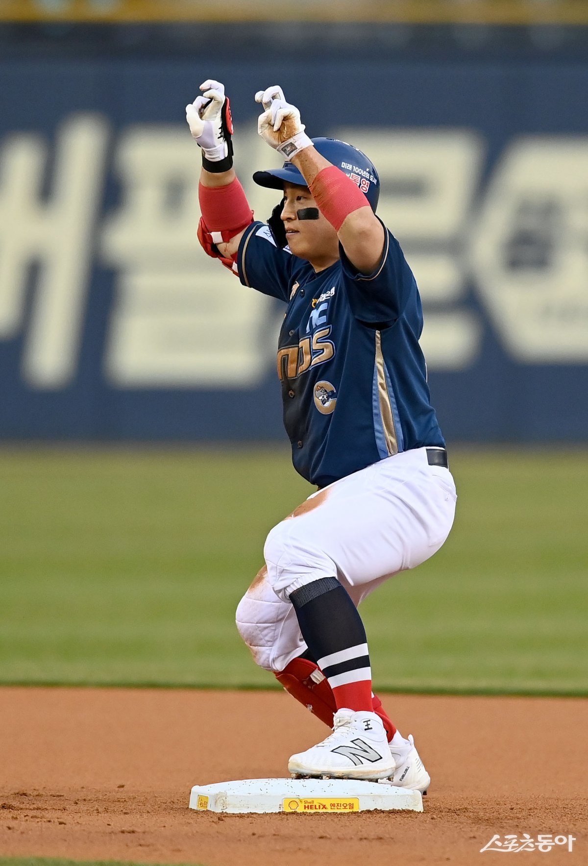 4일 서울 잠실야구장에서 ‘2024 신한은행 SOL뱅크 KBO리그’ NC 다이노스와 LG 트윈스 경기가 열렸다. 1회초 1사 1루 NC 손아섭이 중전 안타를 치고 볼이 3루로 송구되는 사이 2루까지 출루한 후 기뻐하고 있다.