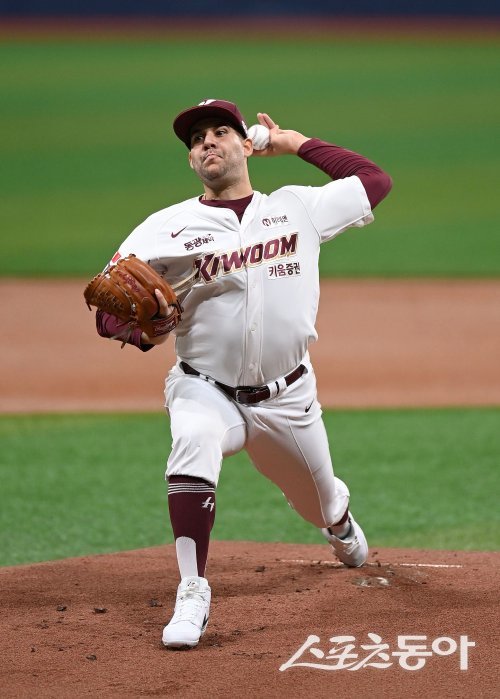 키움 히어로즈 외국인투수 엔마누엘 데 헤이수스(28·등록명 헤이수스)는 KBO리그 데뷔전이었던 3월 26일 창원 NC 다이노스전에서 3.1이닝 5실점(4자책점)으로 무너지며 우려를 샀다. 무엇보다 5개의 4사구(3볼넷 2사구)를 허용하며 제구 불안을 노출한 게 컸다.