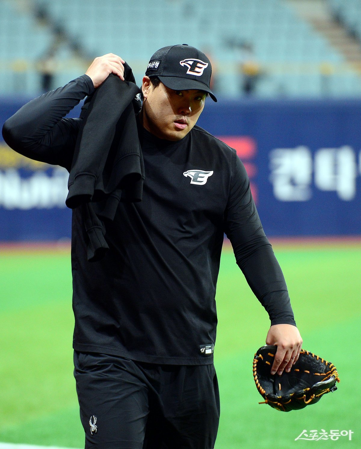 7일 서울 고척스카이돔에서 ‘2024 신한 SOL 뱅크 KBO리그’ 키움 히어로즈와 한화 이글스의 경기가 열린다. 경기 전 한화 류현진이 훈련을 마치고 더그아웃으로 향하고 있다.