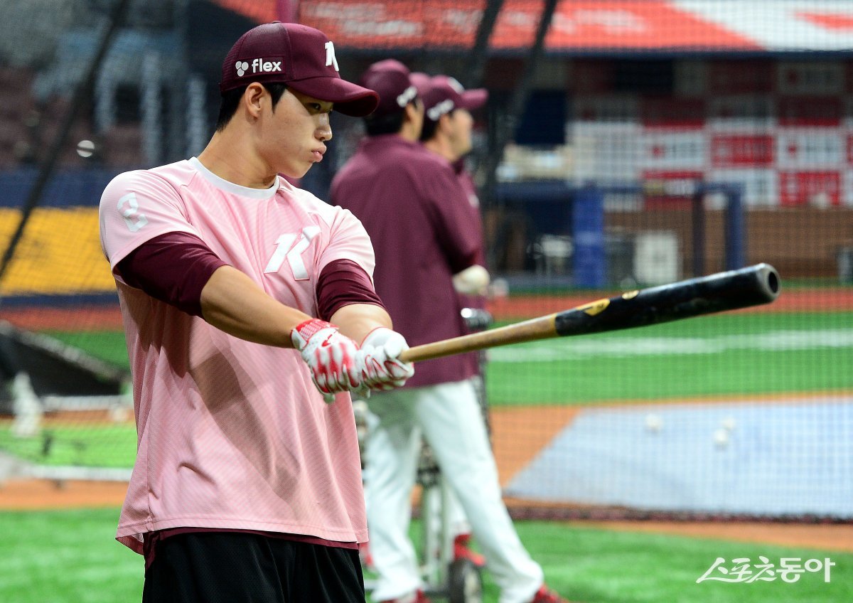 7일 서울 고척스카이돔에서 ‘2024 신한 SOL 뱅크 KBO리그’ 키움 히어로즈와 한화 이글스의 경기가 열린다. 경기 전 키움 이주형이 훈련을 펼치고 있다.