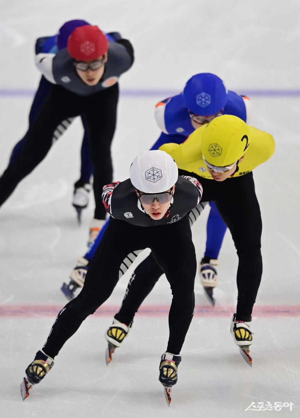 7일 서울 목동아이스링크에서 열린 ‘2024/25시즌 쇼트트랙 국가대표 1차 선발대회’ 남자 1000m 예선 경기에서 서울시청 박지원이 질주하고 있다.