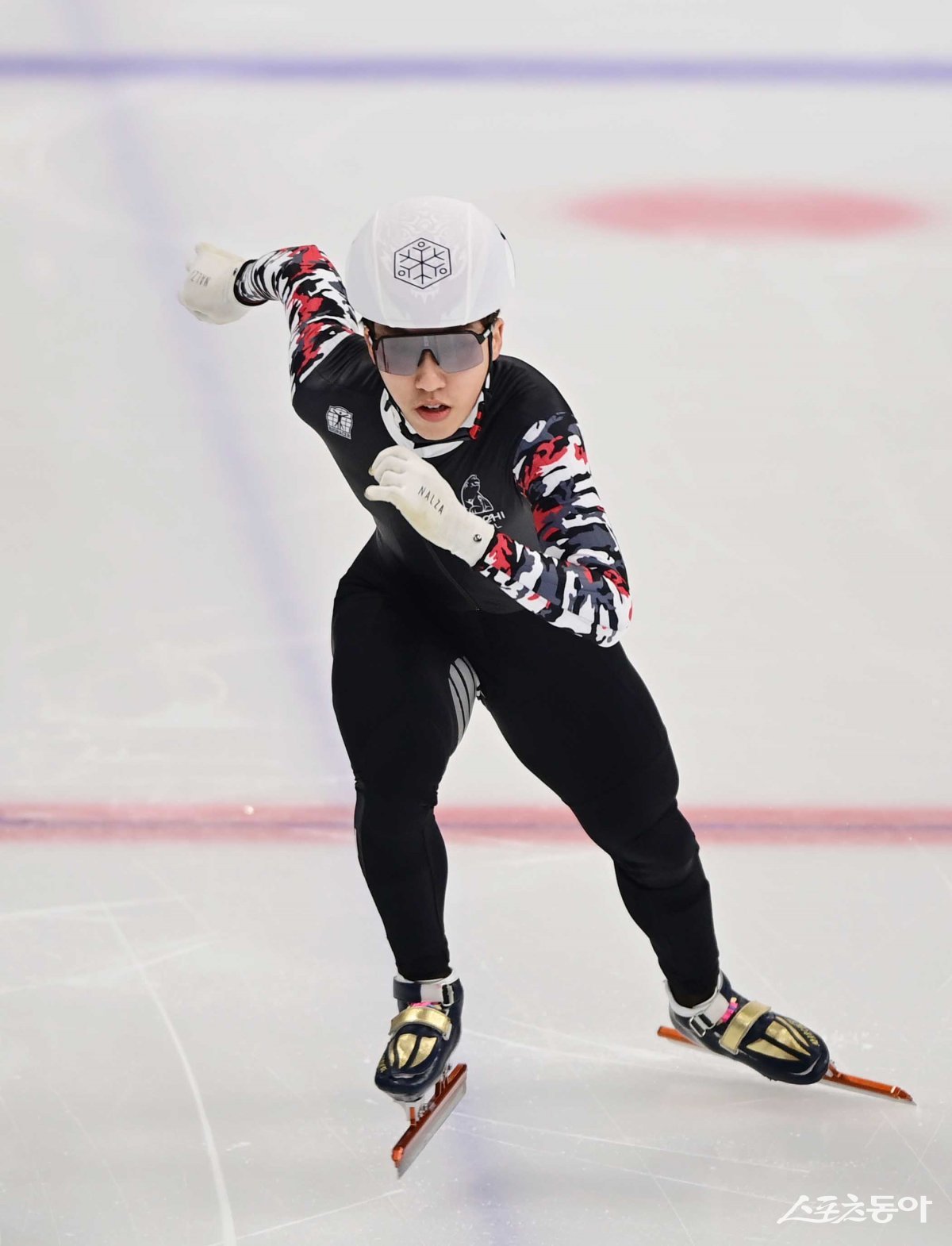 7일 서울 목동아이스링크에서 열린 ‘2024/25시즌 쇼트트랙 국가대표 1차 선발대회’ 남자 1000m 예선 경기에서 서울시청 박지원이 질주하고 있다.
