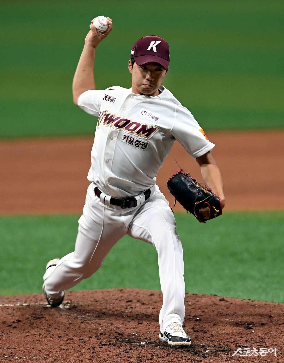 7일 서울 고척스카이돔에서 ‘2024 신한 SOL 뱅크 KBO리그’ 키움 히어로즈와 한화 이글스의 경기가 열렸다. 6회초 무사에서 키움 김연주가 구원 등판해 볼을 던지고 있다.