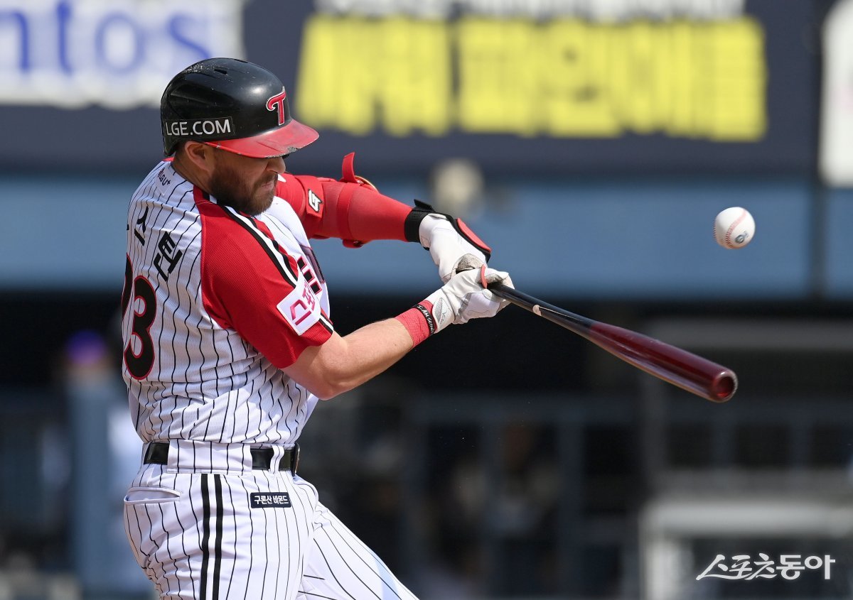 7일 서울 잠실야구장에서 ‘2024 신한은행 SOL뱅크 KBO리그’ KT 위즈와 LG 트윈스 경기가 열렸다. 2회말 무사 만루 LG 오스틴이 1타점 중전 안타를 치고 있다.