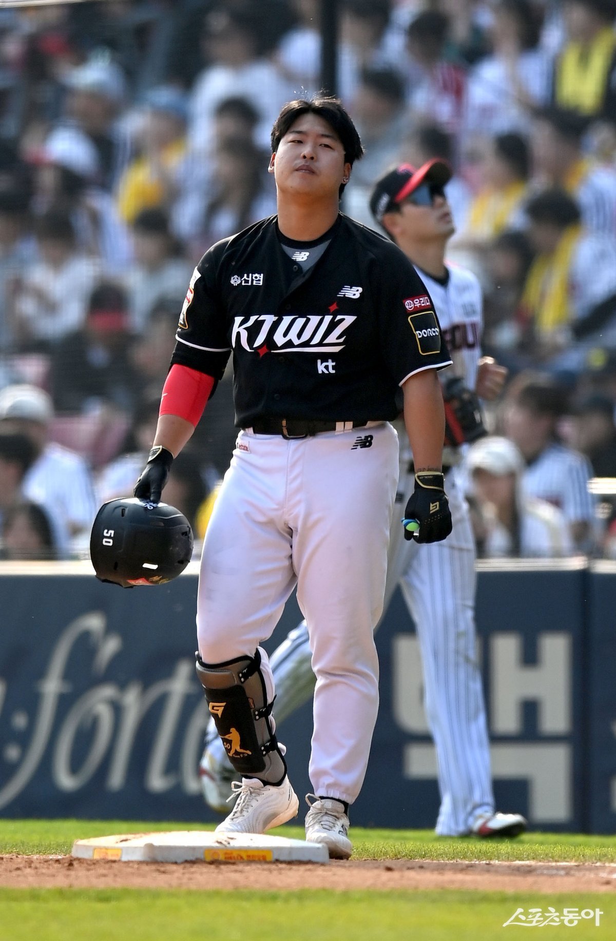 7일 서울 잠실야구장에서 ‘2024 신한은행 SOL뱅크 KBO리그’ KT 위즈와 LG 트윈스 경기가 열렸다. 6회초 2사 만루 KT 강백호가 외야 뜬공으로 아웃된 후 아쉬워하고 있다.