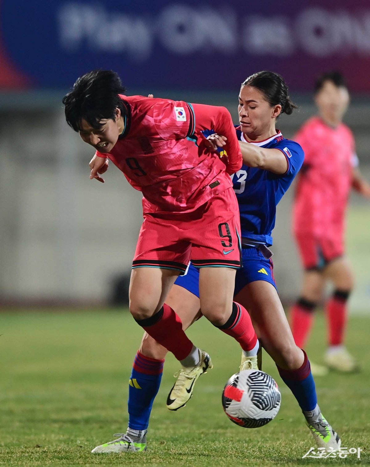 8일 경기도 이천종합운동장에서 열린 ‘신세계 이마트 초청 여자축구국가대표팀 친선경기’ 한국과 필리핀의 경기에서 한국 이금민이 필리핀 수비수의 볼을 빼았고 있다.