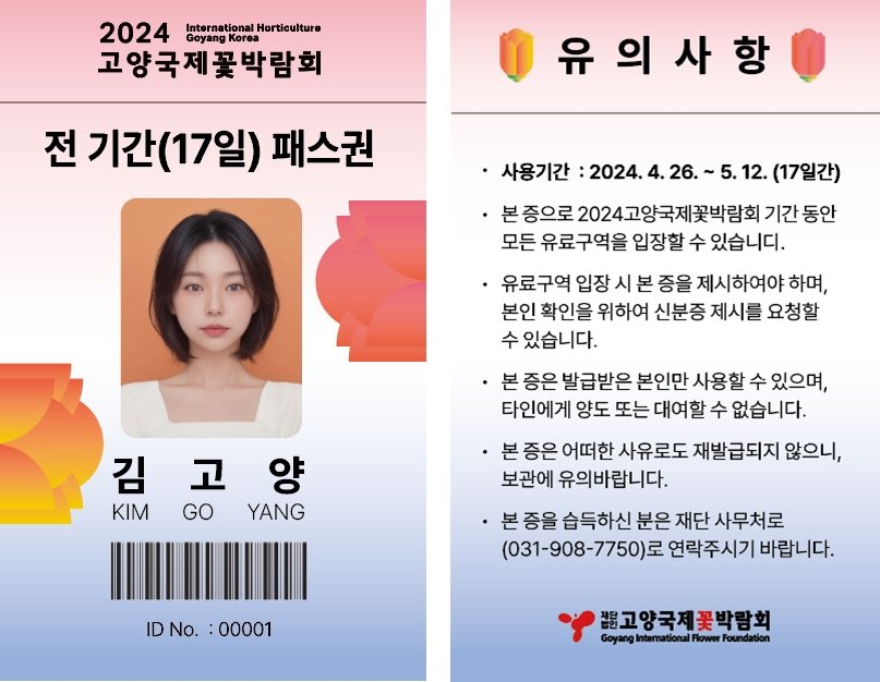 특히, 언제나 꽃박람회에 애정을 갖고 관심을 주는 고양시민들의 관심과 성원에 보답하고자 올해 처음으로 새롭게 선보이는 ‘고양시민 전 기간 17일 패스권’은 시민들 사이에서 가성비가 좋다고 입소문을 타면서 판매에 가속도가 붙고 있다.