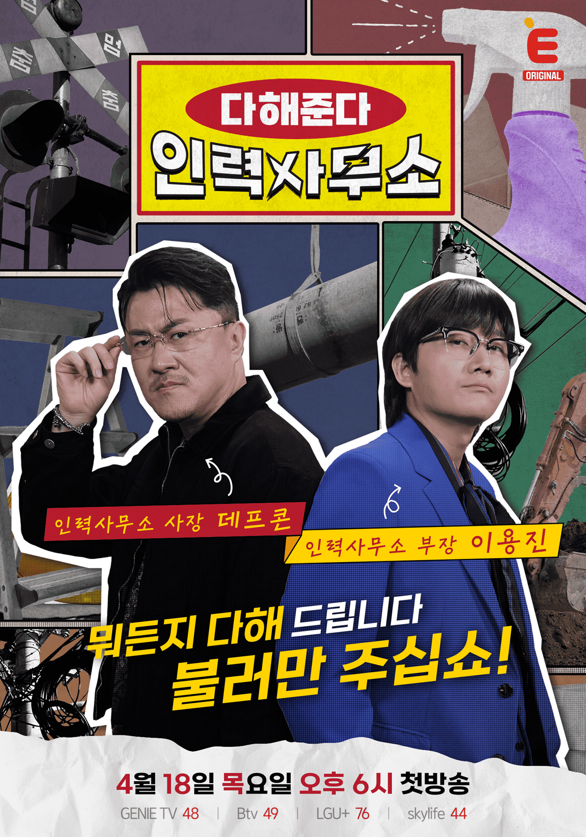 티캐스트 E채널이 MZ 대통령 데프콘, 이용진과 함께 신규 프로그램 '다해준다 인력사무소'를 통해 케미를 예고한다.