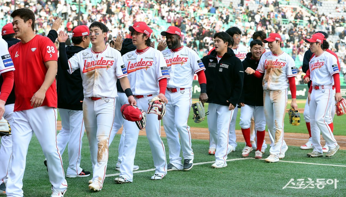 10일 인천 SSG 랜더스필드에서 ‘2024 신한 SOL 뱅크 KBO리그’ SSG 랜더스와 키움 히어로즈의 경기가 열렸다. SSG가 키움을 상대로 8-4 승리를 거둔 후 선수들이 그라운드에서 기쁨을 나누고 있다.