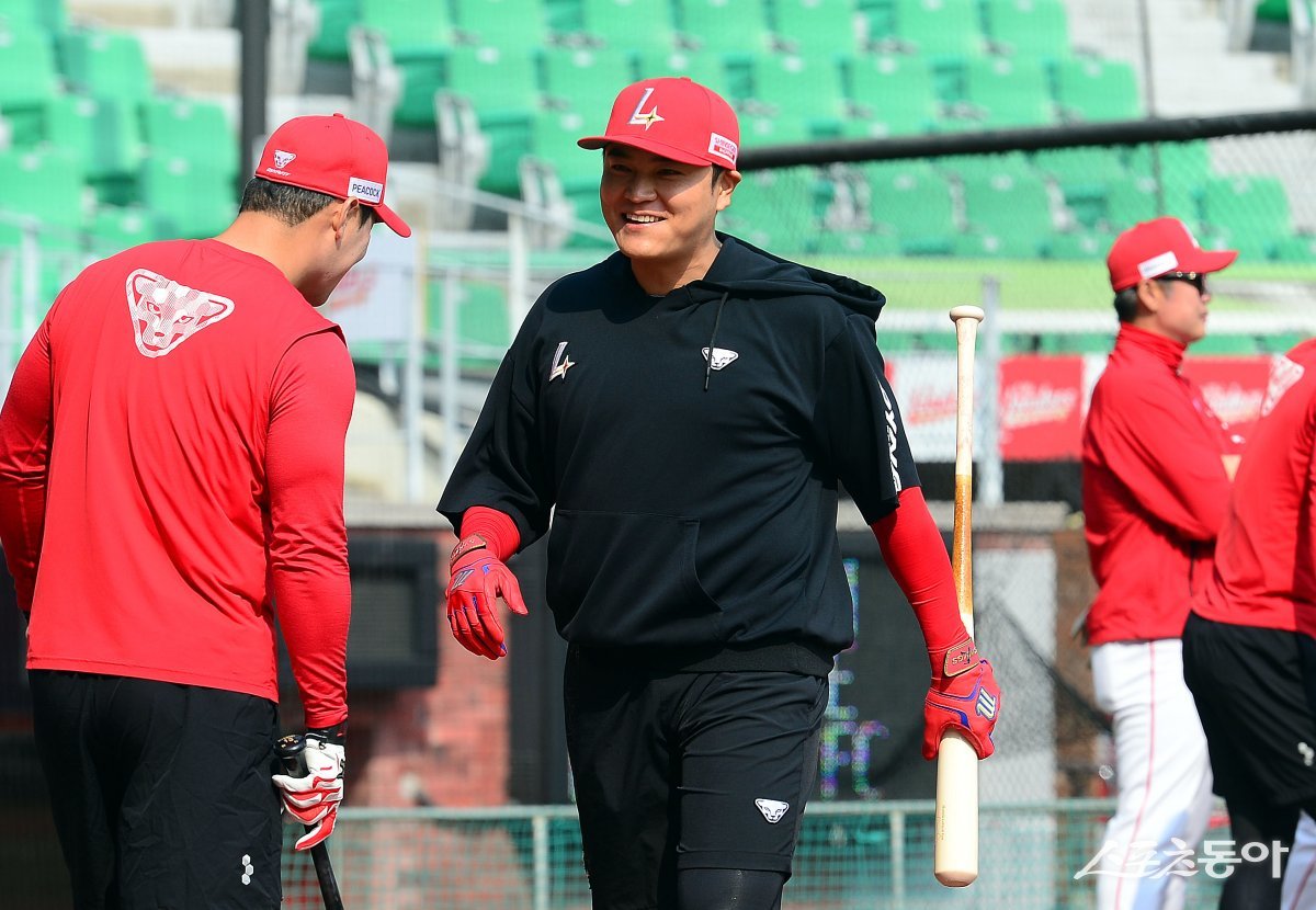 11일 인천 SSG 랜더스필드에서 ‘2024 신한 SOL 뱅크 KBO리그’ SSG 랜더스와 키움 히어로즈의 경기가 열린다. 경기 전 부상이후 1군에 복귀한 SSG 추신수가 환한 미소를 짓고 있다.