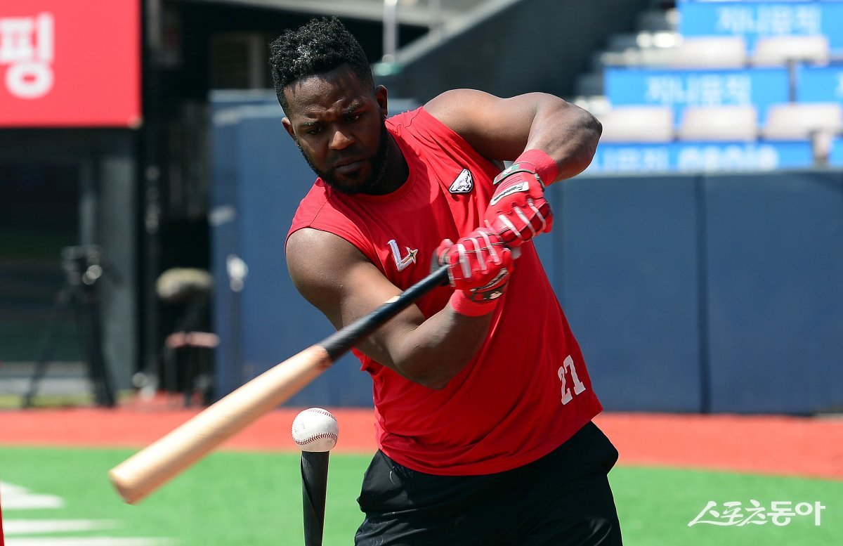 14일 경기도 수원 KT위즈파크에서 ‘2024 신한 SOL 뱅크 KBO리그’ KT 위즈와 SSG 랜더스의 경기가 열린다. 경기 전 SSG 에레디아가 타격 훈련을 펼치고 있다.