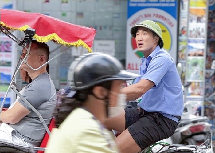 이처럼 화려한 현생을 살고 있는 김동현이 ‘눈떠보니 OOO’를 통해 별안간 하노이 한복판에서 N차 인생에 로그인한다. 김동현은 하노이에서 씨클로(인력거)를 운전하는 기사로서 현생과 180도 다른 인생을 맞이한다. 이와 관련해 공개된 현장 스틸 속 김동현은 씨클로를 운전하며 외국인 관광객들을 모시고 하노이 투어를 진행하고 있어 이목을 집중시킨다. 김동현은 현지에 최적화된 비주얼로 엄청난 허벅지 근육을 뽐내며 페달을 구르고 있지만, 그의 표정에서는 '멘붕'이 느껴질 정도로 지친 기색이 역력하다. 나아가 김동현은 선배 씨클로꾼에게 뭔가 하소연을 하기도 하는데, 응석받이 막내일꾼 같은 모습이 웃음을 자아낸다. 이에 피지컬 대결 못지않은 생고생을 예감케 하는 '하노이 씨클로꾼' 김동현의 N차 인생 적응기에 귀추가 주목된다.