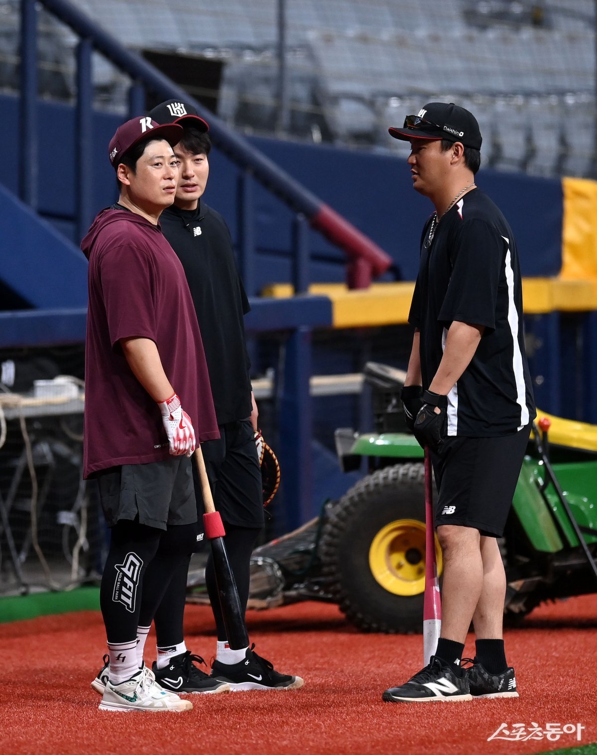 16일 서울 고척스카이돔에서 ‘2024 신한은행 SOL뱅크 KBO리그’ KT 위즈와 키움 히어로즈 경기가 열린다. KT 박병호, 장성우와 키움 이원석이 이야기를 하고 있다. 고척 | 김종원 기자 won@donga.com