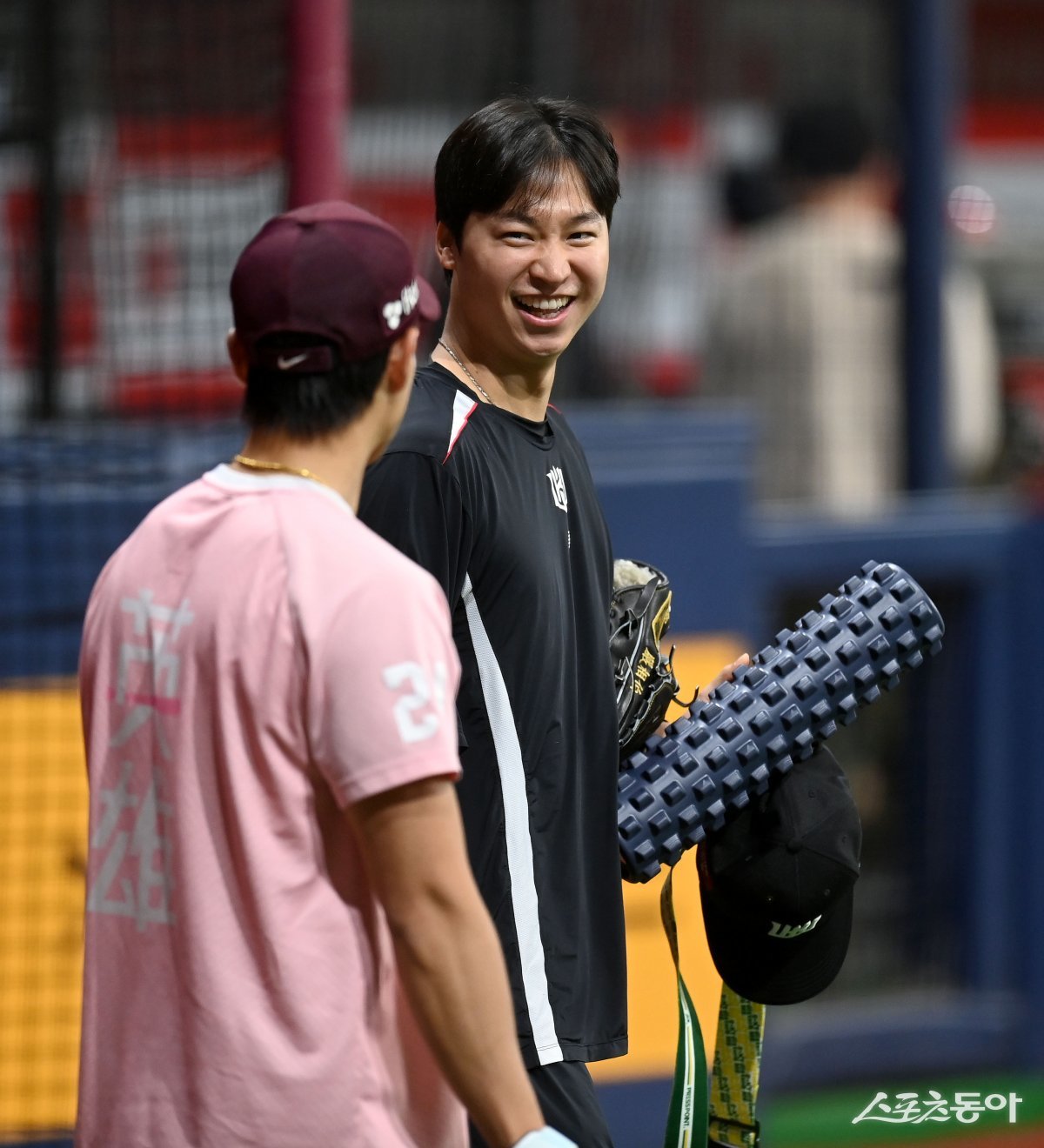 16일 서울 고척스카이돔에서 ‘2024 신한은행 SOL뱅크 KBO리그’ KT 위즈와 키움 히어로즈 경기가 열린다. KT 엄상백이 이야기를 하고 있다. 고척 | 김종원 기자 won@donga.com