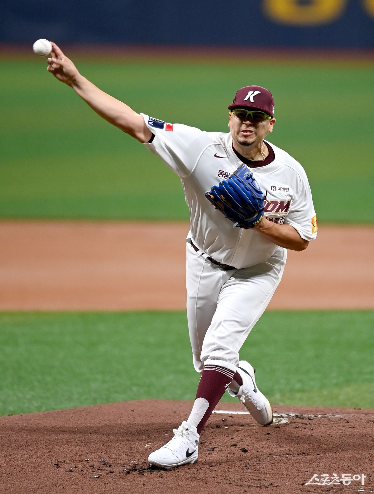 16일 서울 고척스카이돔에서 ‘2024 신한은행 SOL뱅크 KBO리그’ KT 위즈와 키움 히어로즈 경기가 열렸다. 선발 투수로 등판한 키움 후라도가 역투하고 있다.
