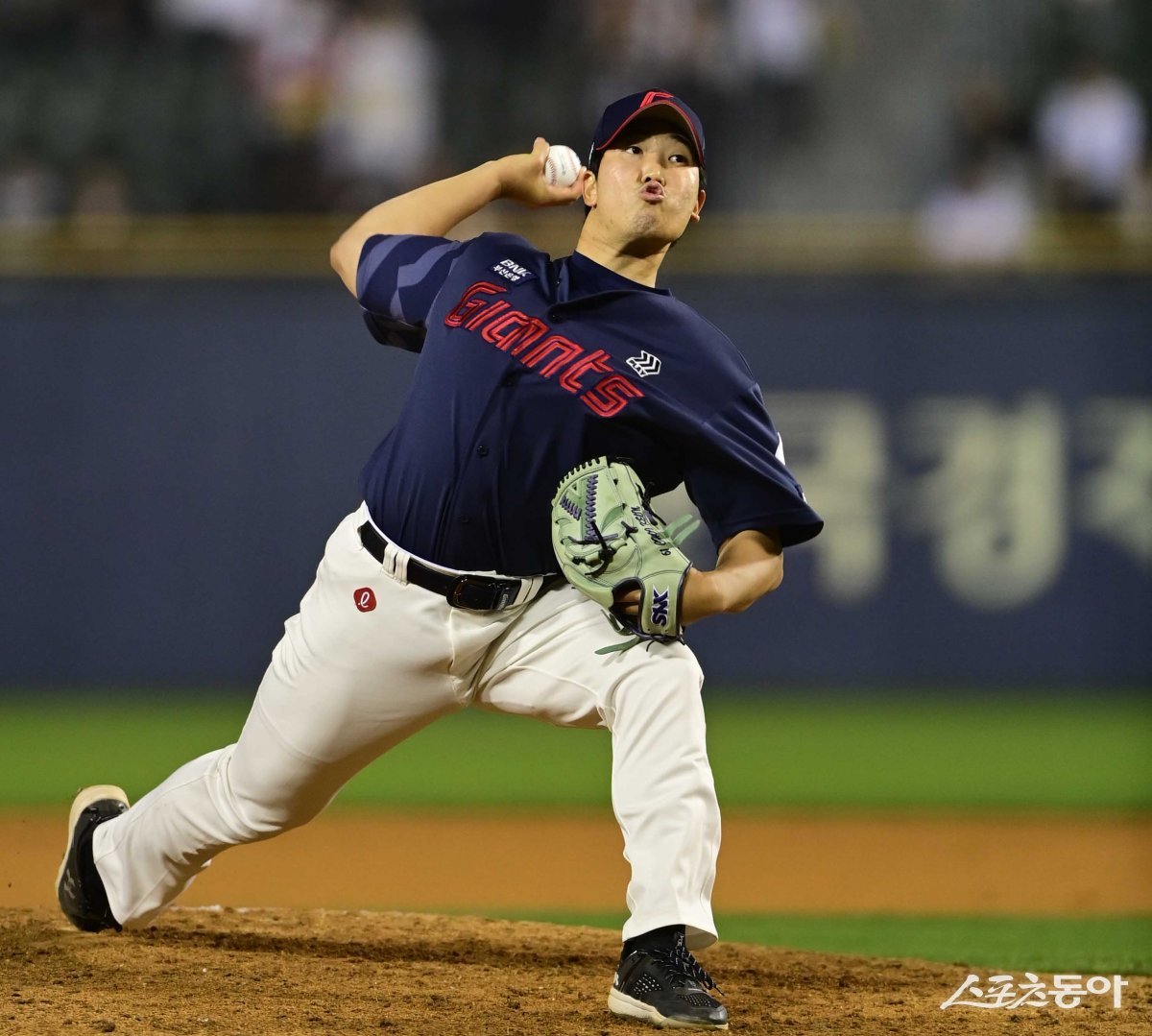16일 서울 잠실야구장에서 열린 ‘2024 신한 SOL 뱅크 KBO리그’ LG 트윈스와 롯데 자이언츠의 경기에서 7회말 롯데 최이준이 교체로 마운드에 올라 역투하고 있다.