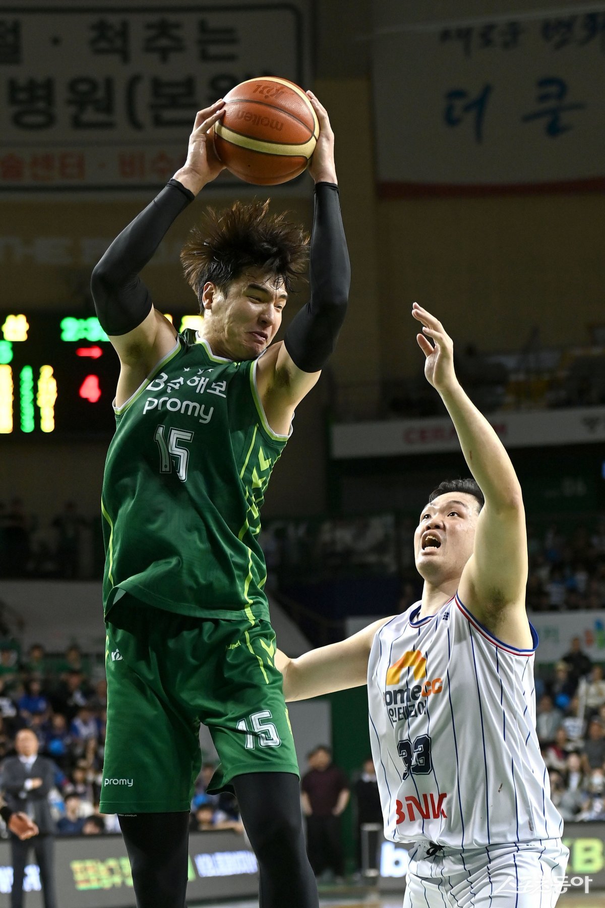 17일 원주종합체육관에서 열린 ‘2023-2024 프로농구’ 4강 플레이오프 2차전 DB와 KCC 경기에서 DB 김종규가 리바운드를 하고 있다.