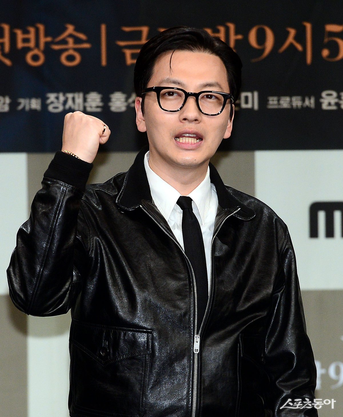 18일 서울 마포구 상암동 MBC 골든마우스홀에서 열린 MBC 새 금토드라마 ‘수사반장 1958’ 제작발표회에 참석한 배우 이동휘가 카메라를 향해 포즈를 취하고 있다.