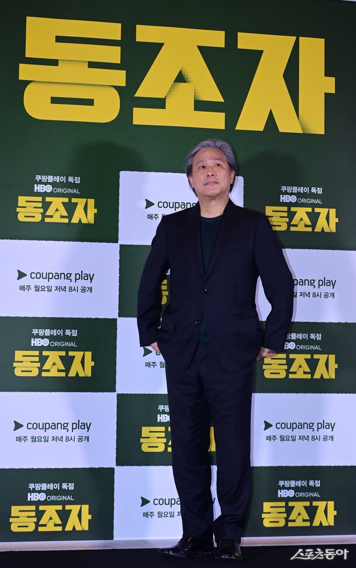 박찬욱 감독이 18일 서울 강남구 삼성동 메가박스 코엑스점에서 열린 쿠팡플레이 독점 HBO 오리지널 시리즈 ‘동조자’ 언론시사회 및 기자간담회에서 포즈를 취하고 있다.