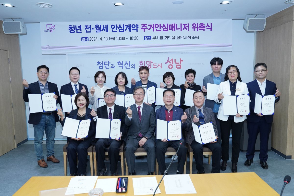 성남시는 부동산 전월세 계약에 어려움을 겪는 1인 가구 청년들을 돕기 위해 공인중개사 16명을 주거안심매니저로 위촉했다고 19일 밝혔다.1인 가구 청년들을 돕기 위해 공인중개사 16명을 주거안심매니저로 위촉
