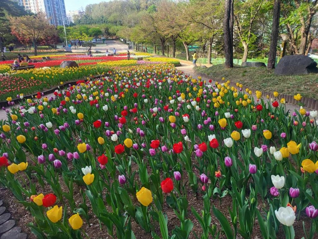 지난해 11월 심은 튤립 구근이 봄볕 가득한 4월 그 화사한 날개를 펼쳐 시민들의 눈과 마음을 사로잡고 있다.