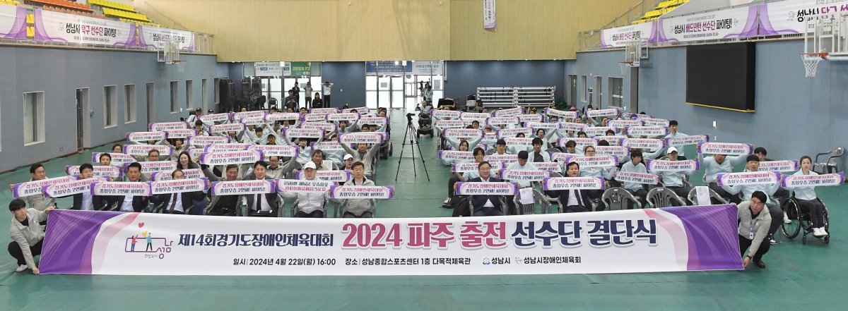 성남시는 22일 오후 4시 성남종합스포츠센터 1층 다목적체육관(중원구 성남동)에서 ‘제14회 경기도 장애인체육대회 출전 선수단 결단식’을 열었다.이날 결단식은 “신상진 성남시장과 선수단 301명” 참석