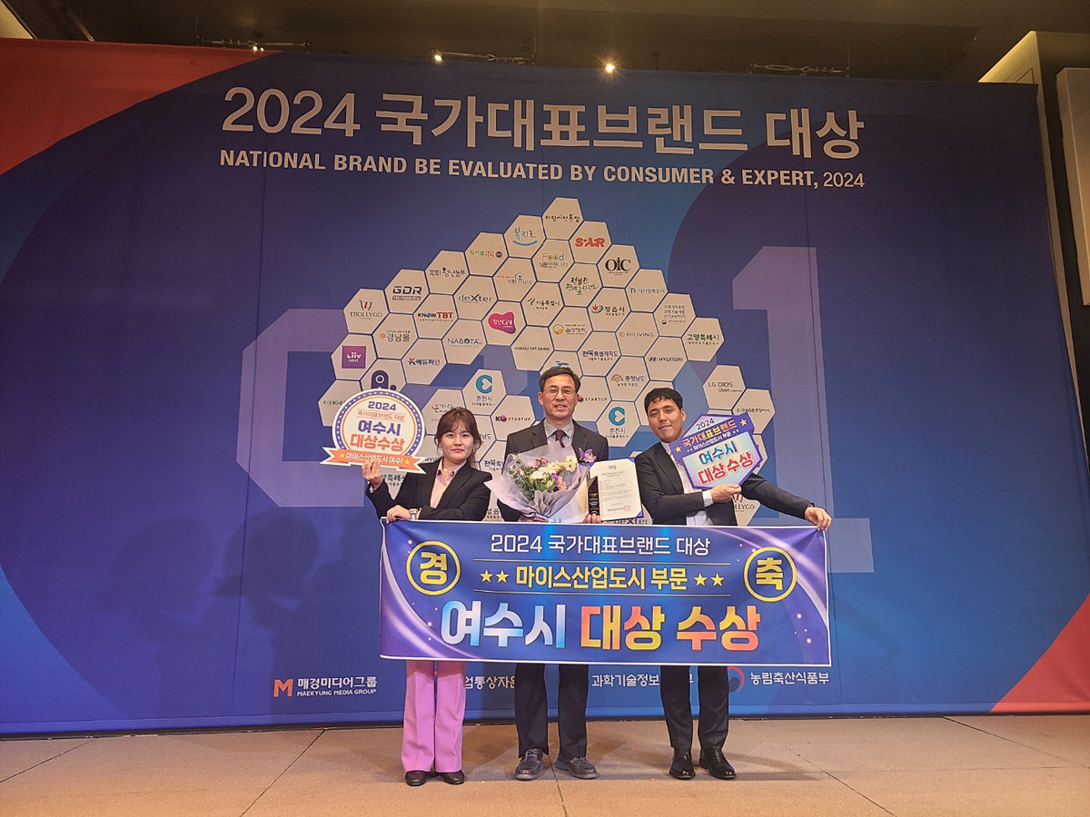 전남 여수시가 25일 엠버서더서울풀만호텔에서 열린 ‘2024 국가대표브랜드 대상’에서 마이스산업도시 부문 대상을 수상했다.‘국가대표 브랜드대상’은 매경미디어그룹과 소비자브랜드평가원이 공동으로 조사·평가하고 산업통상자원부, 행정안전부, 농림축산식품부가가 후원하며 창의적 전략으로 소비자 신뢰를 높인 브랜드에 수여되는 상이다.