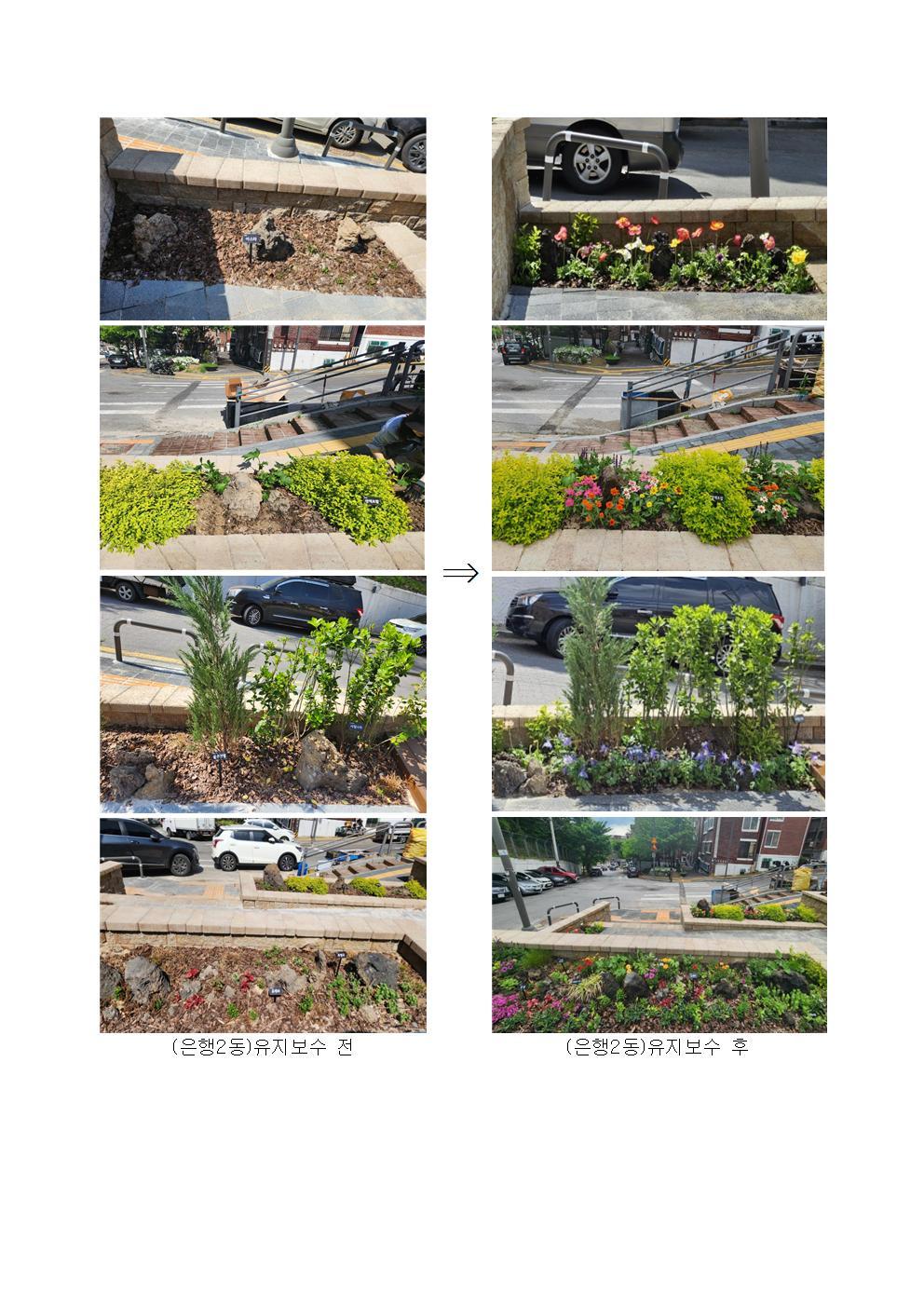 시는 은행2동 안전마을의 정원인 안심마루에 고사한 초화류를 솎아내고 봄·여름 꽃을 재식재하여 절기별로 다른 색감의 초화류를 감상할 수 있도록 보완했다.