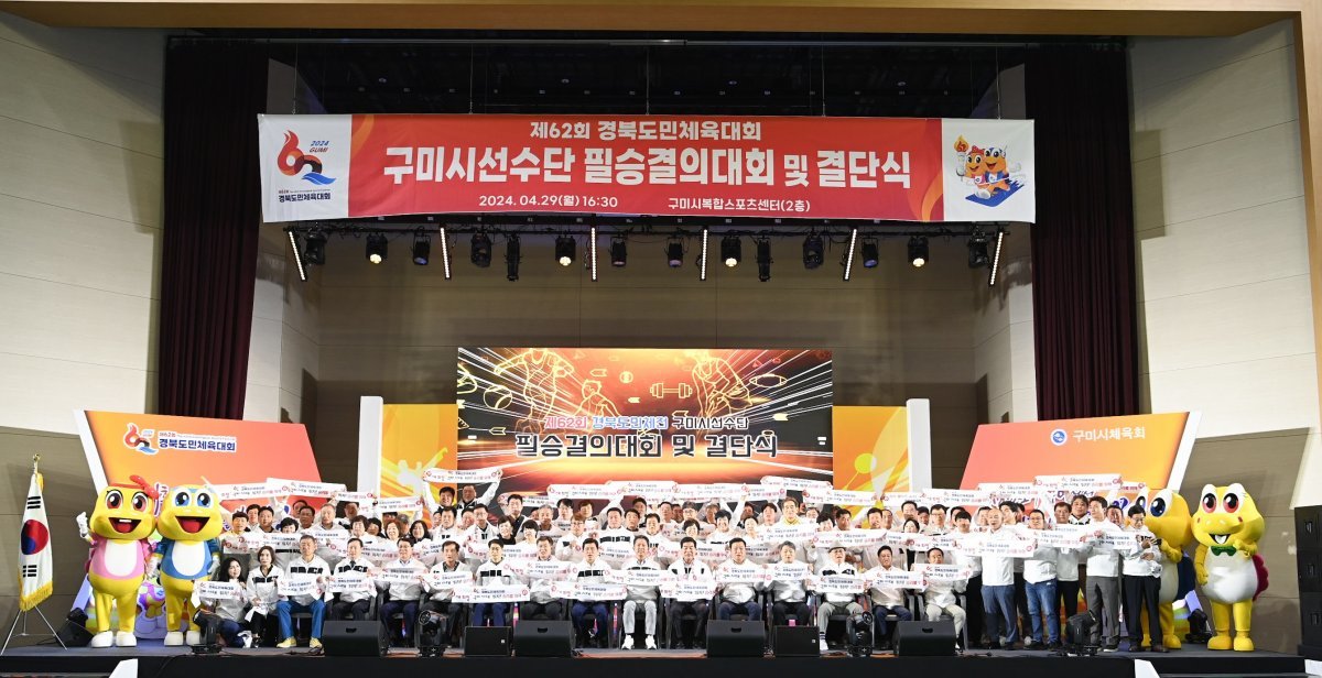 구미시는 지난 29일 복합스포츠센터에서 구미시체육회(회장 윤상훈) 주관으로 도·시의원, 기관단체장, 관내 초·중·고 학교장, 체육회 임원과 선수 등 400여 명이 참석한 가운데 ‘제62회 경북도민체육대회 필승결의대회 및 결단식’을 개최했다고 30일 밝혔다.