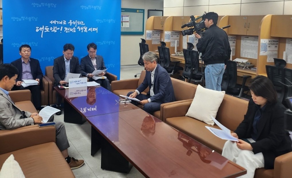 전라남도가 2일 지방기자실에서 정부의 전라선 고속화 예타 대상사업 진행 보류에 대한 입장문을 발표했다. 사진제공|양은주 기자