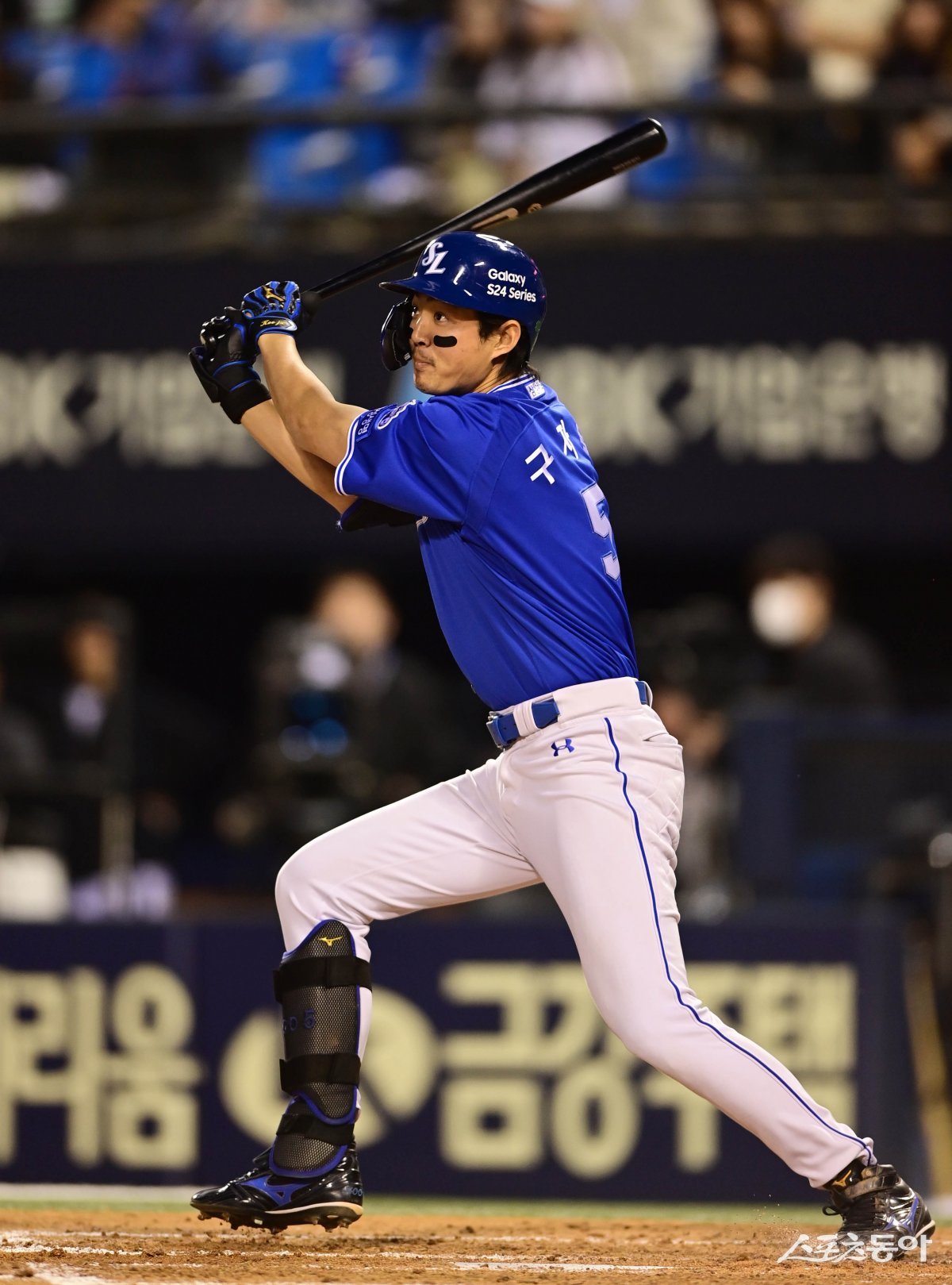 2일 서울 잠실야구장에서 열린 ‘2024 신한 SOL 뱅크 KBO리그’ 두산 베어스와 삼성 라이온즈의 경기에서 5회초 1사 1, 2루 삼성 구자욱이 1타점 좌전 적시타를 치고 있다.