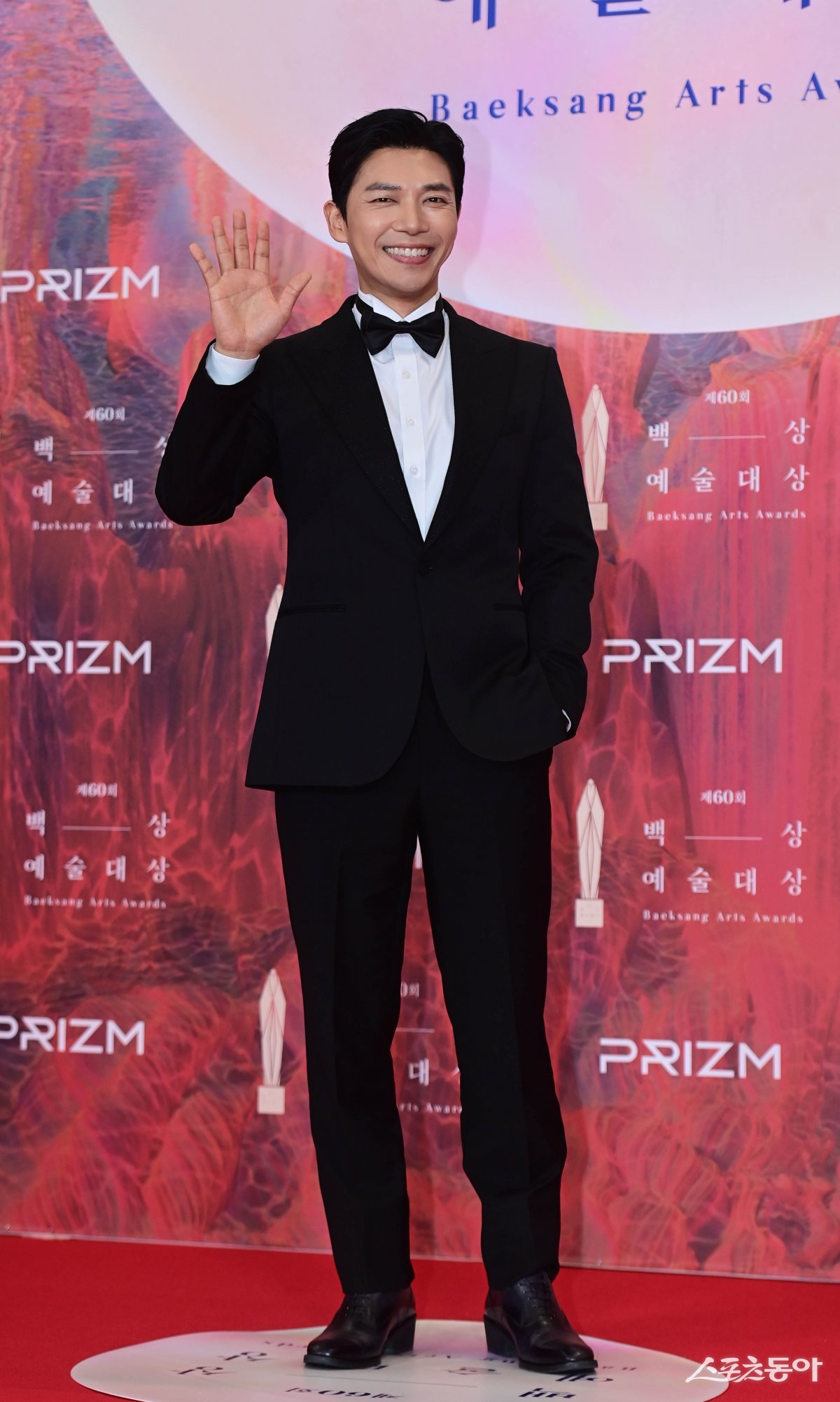 배우 지승현이 7일 서울 강남구 삼성동 코엑스에서 열린 ‘제60회 백상예술대상’ 레드카펫 행사에서 포즈를 취하고 있다.