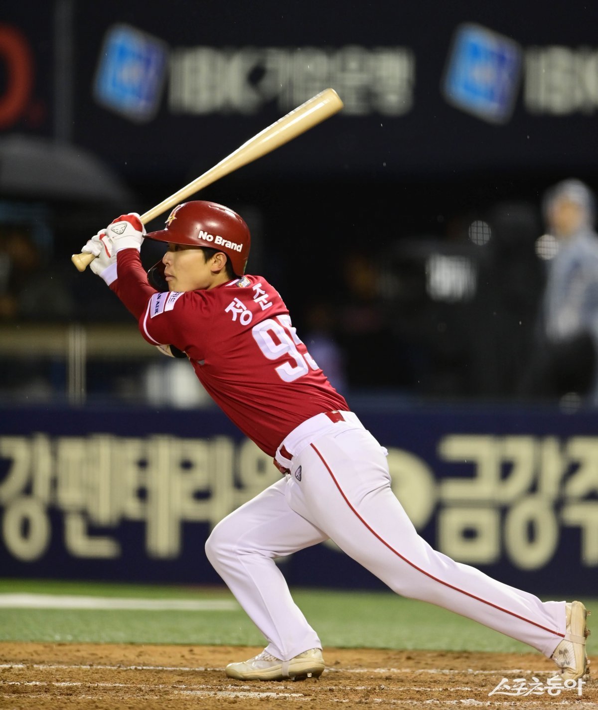 7일 서울 잠실야구장에서 열린 ‘2024 신한 SOL 뱅크 KBO리그’ LG 트윈스와 SSG 랜더스의 경기에서 4회초 1사 2루 SSG 정준재가 선제 1타점 좌전 2루타를 치고 있다.