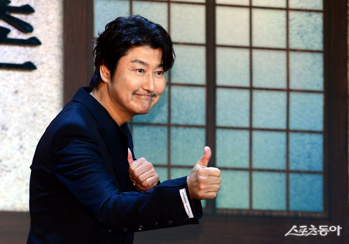 8일 서울 강남구 삼성동 그랜드 인터컨티넨탈 서울 파르나스 그랜드볼룸에서 열린 디즈니+ 오리지널 시리즈 ‘삼식이 삼촌’ 제작발표회에 참석한 송강호가 카메라를 향해 포즈를 취하고 있다.