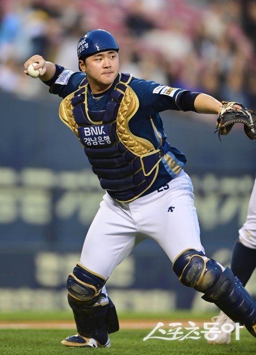 김형준은 무섭게 크는 포수다. 지난해 발목 부상에서 복귀한 뒤 2022항저우아시안게임, 2023아시아프로야구챔피언십(APBC) 등 연속해서 국제대회에 출전하더니 실력이 일취월장했다. 올 시즌 20경기 이상 뛴 포수들 중 도루저지율 1위(0.304)다. 또 3~4월 팀 평균자책점(ERA) 1위(3.31)를 이끌었고, 이달 3일 인천 SSG 랜더스전에선 시즌 7호 홈런으로 개인 한 시즌 최다홈런 기록을 경신했다. 말 그대로 공·수에서 맹활약 중이다.