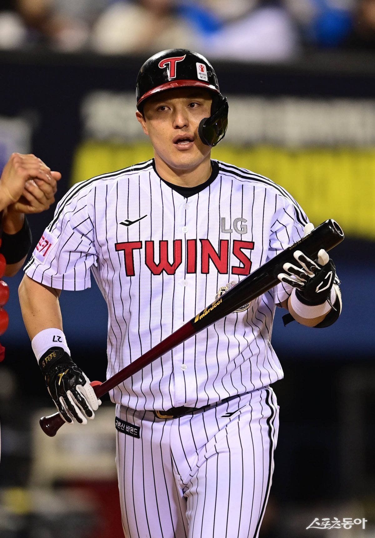 8일 서울 잠실야구장에서 열린 ‘2024 신한 SOL 뱅크 KBO리그’ LG 트윈스와 SSG 랜더스의 경기에서 5회말 무사 2루 LG 박동원이 삼진 아웃을 당한 후 아쉬워하고 있다.