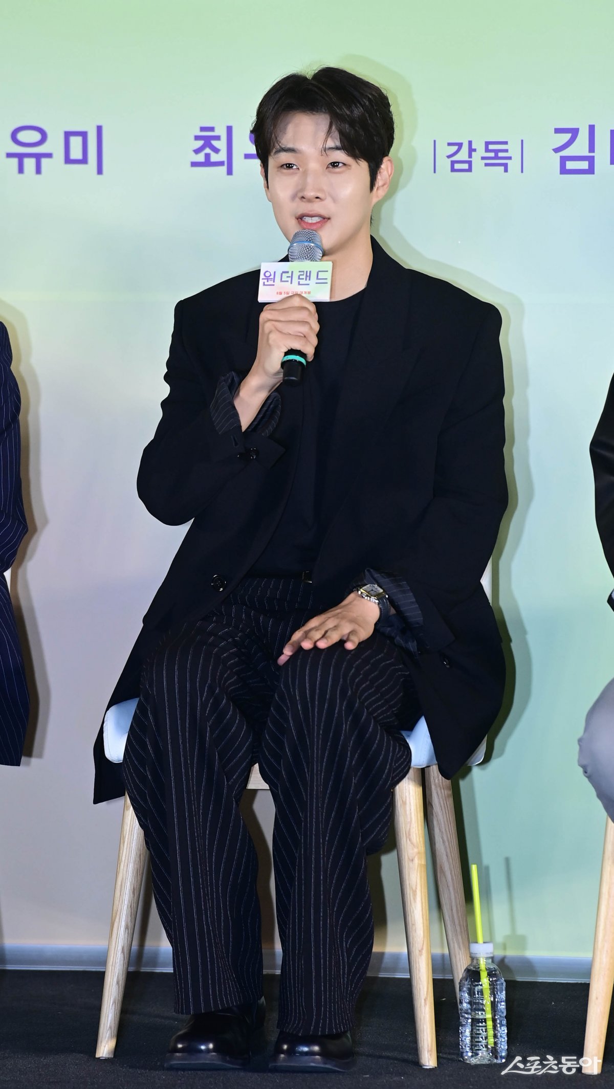 배우 최우식이 9일 서울 용산구 CGV용산아이파크몰점에서 열린 영화 ‘원더랜드’ 제작보고회에서 인사말을 하고 있다.