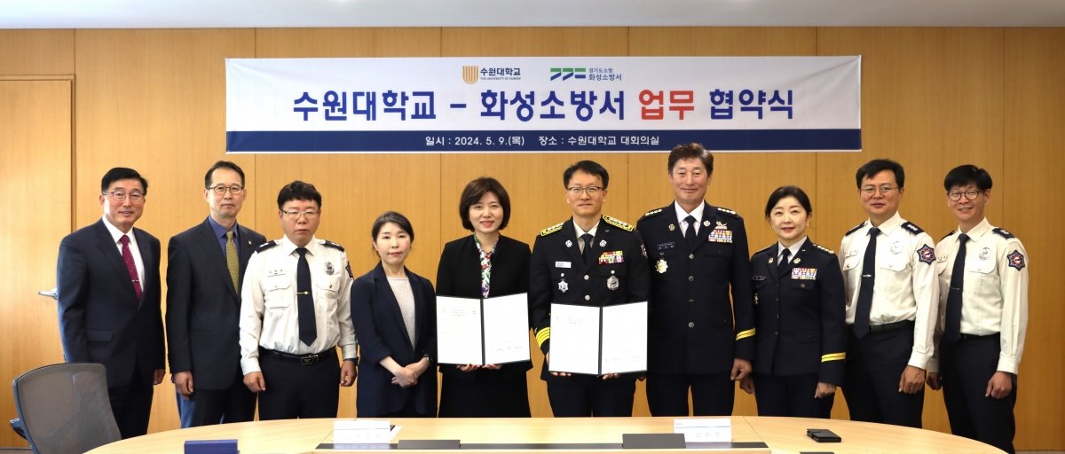 경기 화성소방서는 9일 수원대학교 대회의실에서 상호협력 및 상호지원으로 유기적인 협력을 통해 지역사회의 발전을 기여하고자 수원대학교와 업무협약을 체결했다고 밝혔다.