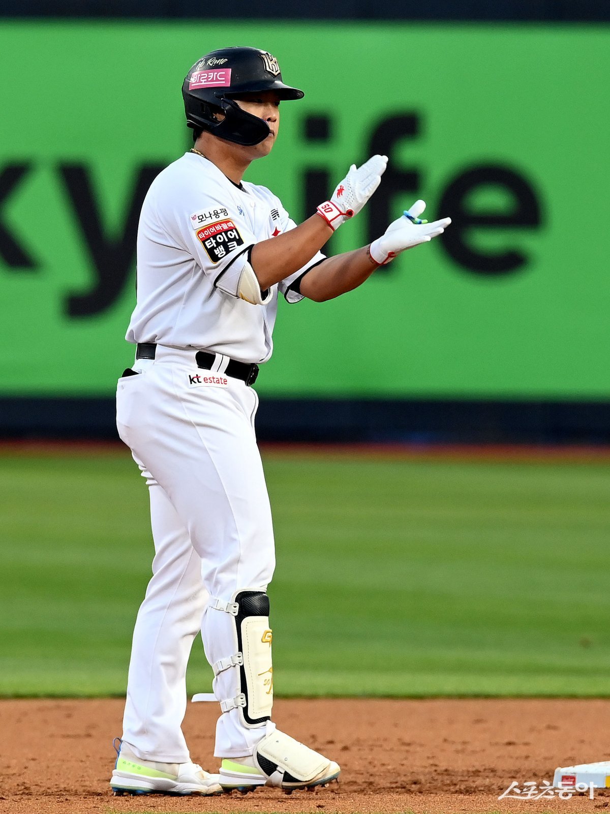 9일 경기도 수원 KT위즈파크에서 ‘2024 신한 SOL 뱅크 KBO리그’ KT 위즈와 NC 다이노스의 경기가 열렸다. 1회말 무사 1루에서 KT 강백호가 동점 1타점 2루타를 날린 후 환호하고 있다.