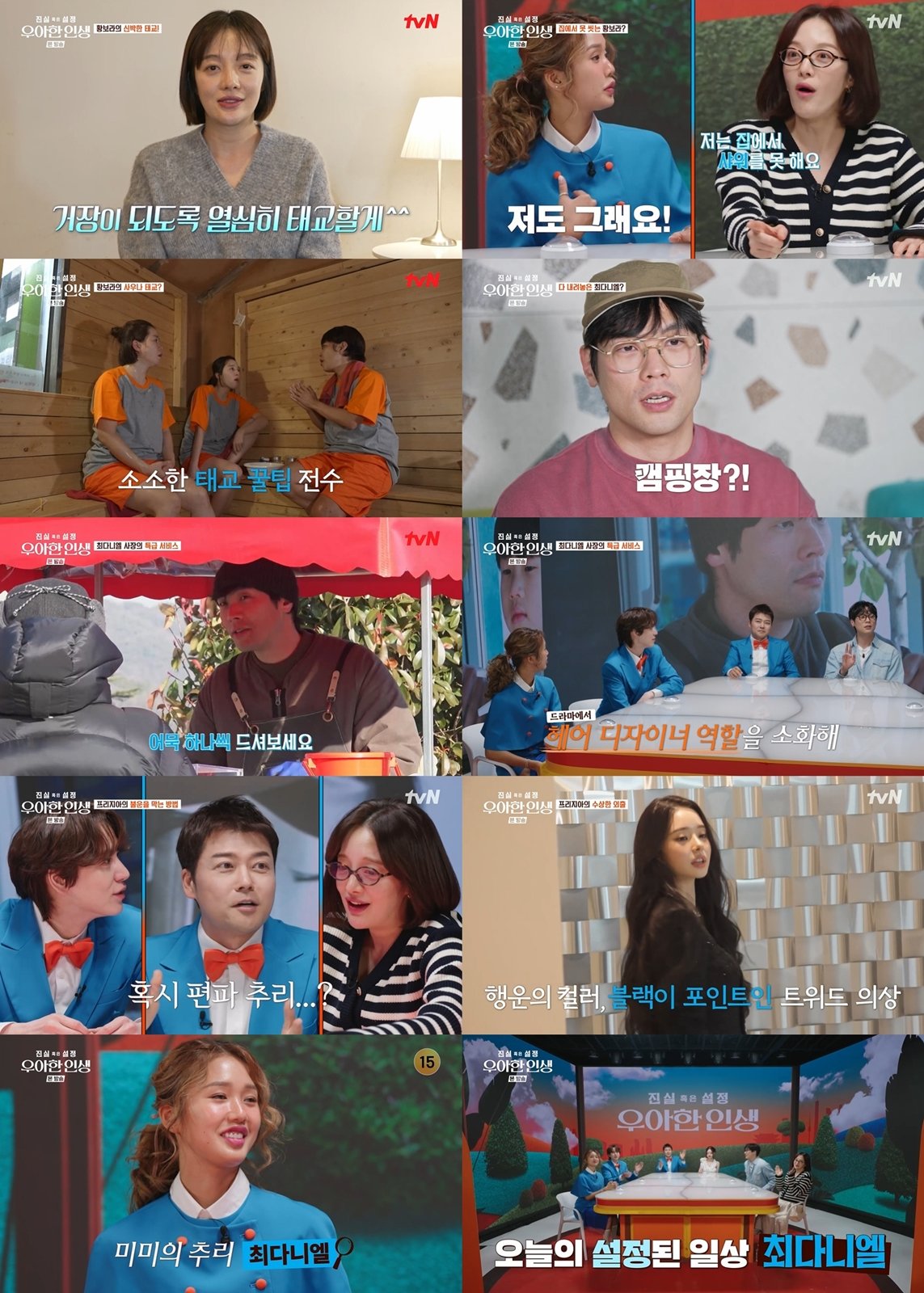 9일 방송된 tvN ‘진실 혹은 설정: 우아한 인생’(약칭 ‘우아한 인생’)에서는 출산을 앞둔 황보라의 거장 만드는 태교, 캠핑장 사장 최다니엘의 자연인 그 자체인 하루, 샤머니즘에 진심인 프리지아의 일상이 관심을 모았다. 특히 세 사람 중 최다니엘이 콘셉트로 밝혀져 미미가 첫 정답을 맞혔다.