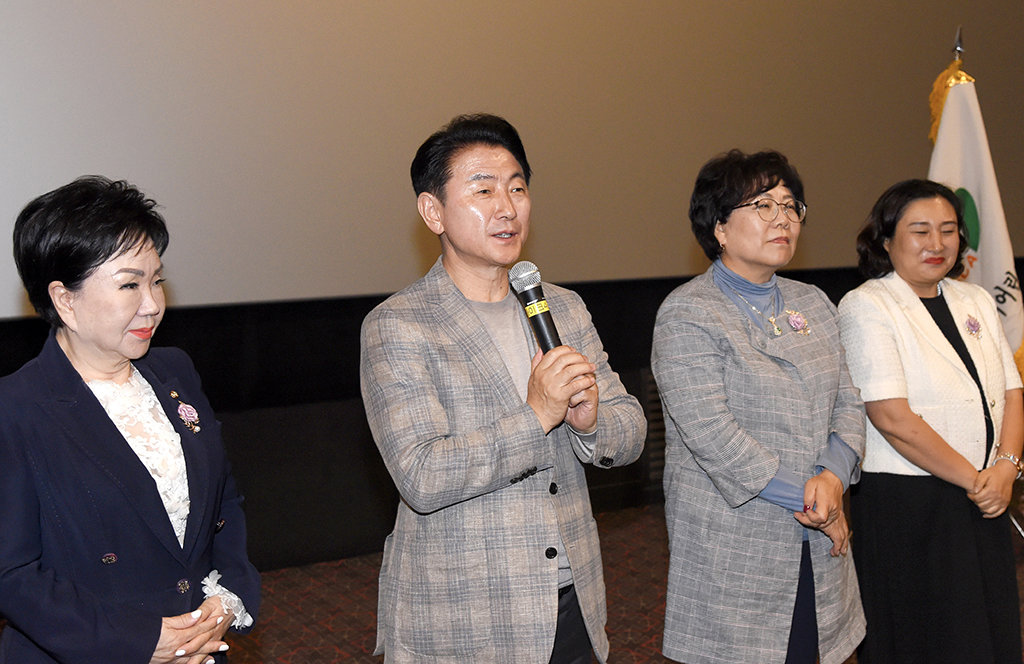 김동근 시장(윈쪽 두번째)이 지난 10일 의정부 신세계 CGV에서 개최된 ‘보육교사 역량 강화’ 행사에서 축사를 하고 있다. 사진제공 | 의정부시