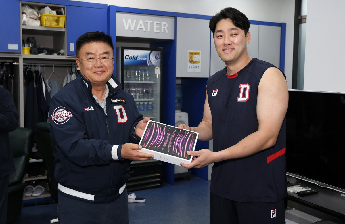박 회장 덕분에 선수단의 전력분석 자료에 대한 접근성이 훨씬 좋아졌다. 주장 양석환은 “회장님께서 언제나 선수단에 물심양면으로 신경 써주시는 점이 피부로 느껴진다”며 “태블릿PC를 활용하면 야구장 안팎에서 전력분석이 수월해질 것 같다. 좋은 성적으로 보답하겠다”고 밝혔다.