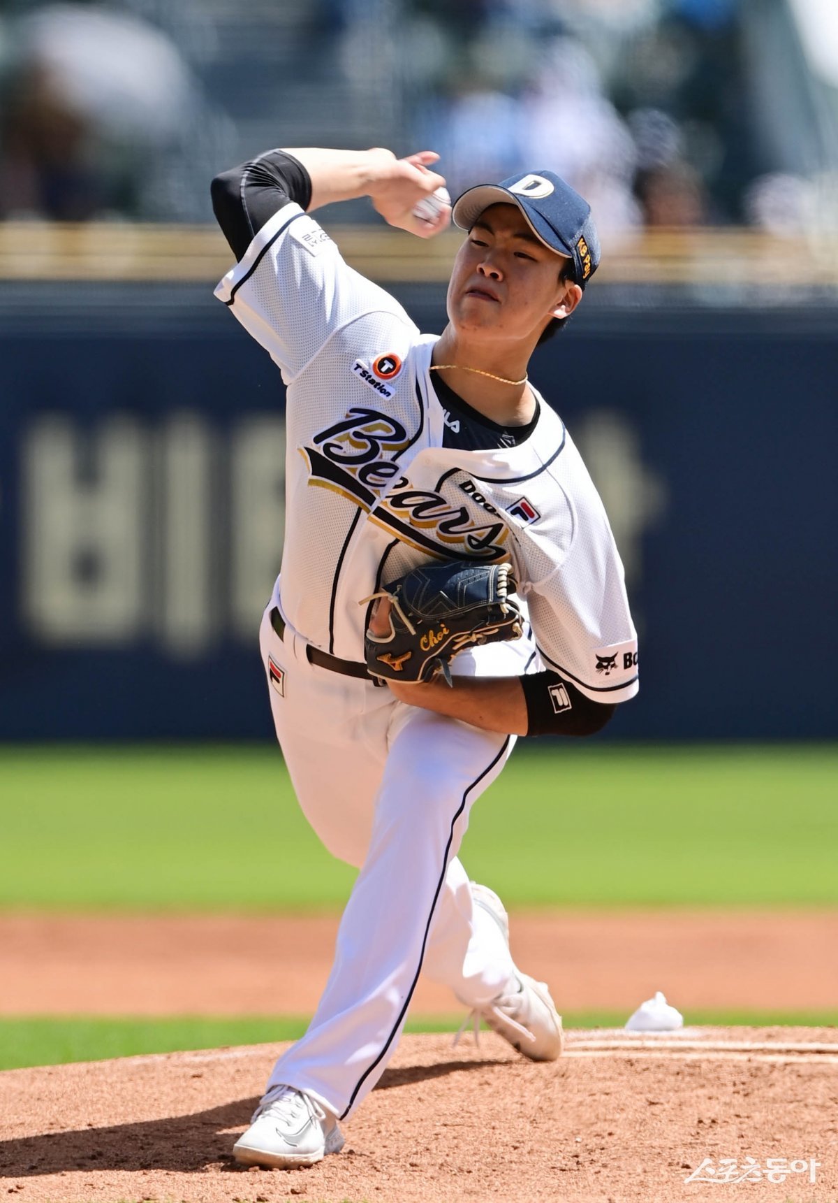 12일 서울 잠실야구장에서 열린 ‘2024 신한 SOL 뱅크 KBO리그’ 두산 베어스와 KT 위즈의 더블헤더 1차전 경기에서 두산 선발 투수 최준호가 마운드에 올라 역투하고 있다.