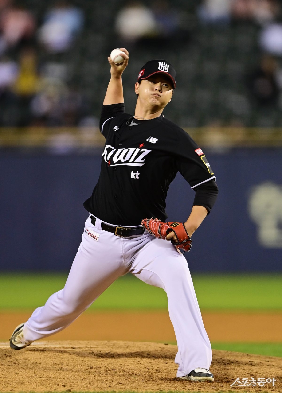 12일 서울 잠실야구장에서 열린 ‘2024 신한 SOL 뱅크 KBO리그’ 두산 베어스와 KT 위즈의 더블헤더 2차전 경기에서 7회말 KT 김민이 교체로 마운드에 올라 역투하고 있다.