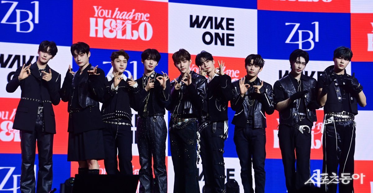 그룹 제로베이스원이 13일 서울 용산구 한남동 블루스퀘어 마스터카드홀에서 열린 미니앨범 3집 ‘You had me at HELLO’ 발매 기념 프레스 쇼케이스에서 포즈를 취하고 있다.