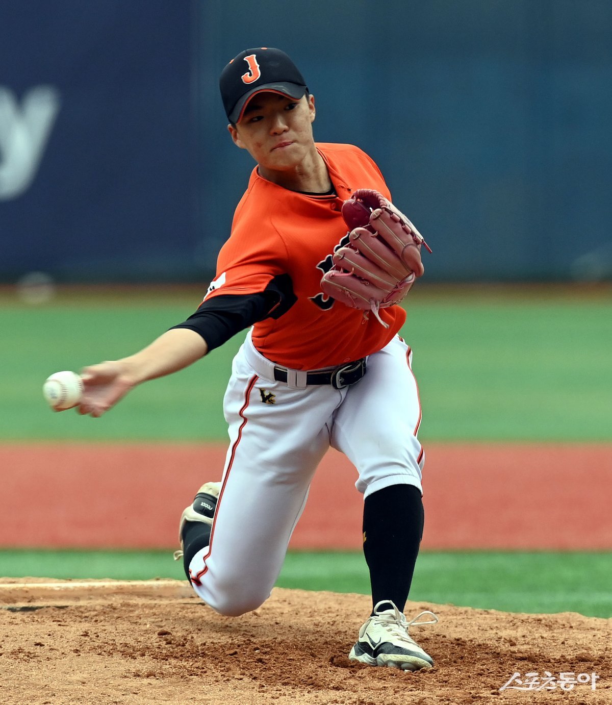 15일 서울 목동야구장에서 ‘제 78회 황금사자기 전국고교야구대회 겸 주말리그 왕중왕전’ 제주고와 부산공고의 경기가 열렸다. 제주고 김재민이 선발 등판해 볼을 던지고 있다.