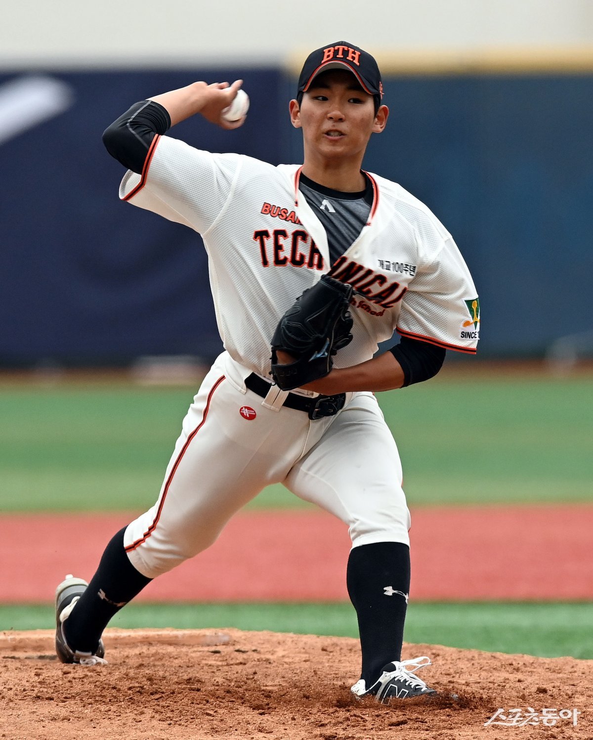 15일 서울 목동야구장에서 ‘제 78회 황금사자기 전국고교야구대회 겸 주말리그 왕중왕전’ 제주고와 부산공고의 경기가 열렸다. 부산공고 이상현이 선발 등판해 볼을 던지고 있다.