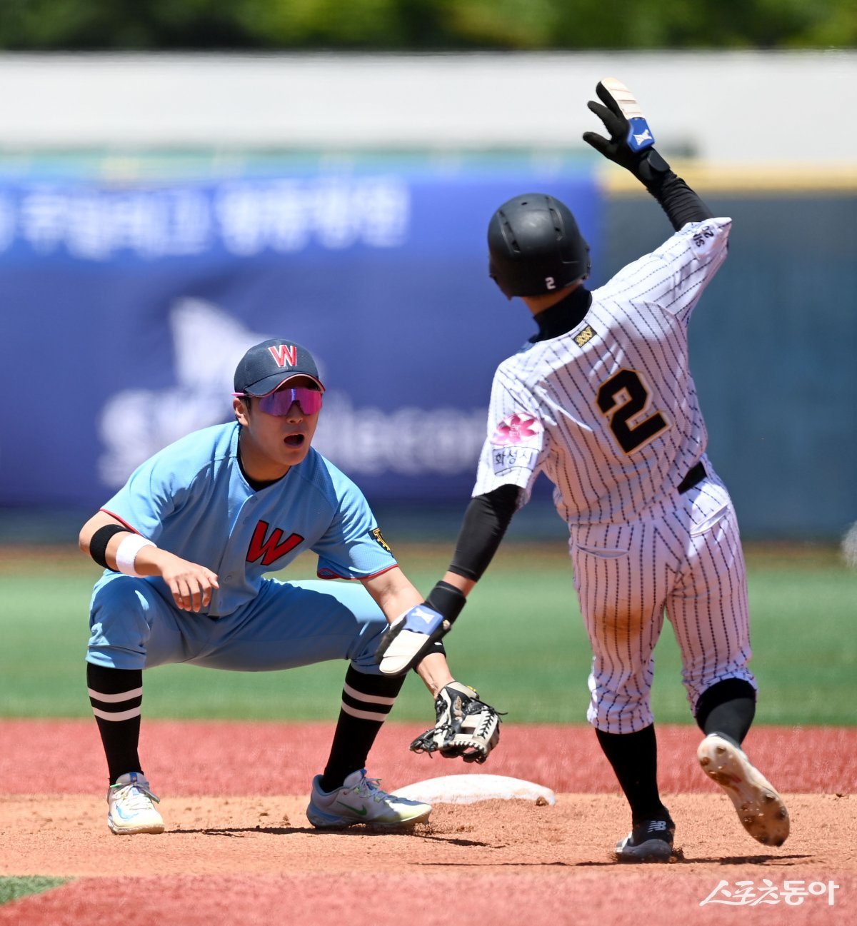 16일 서울 목동야구장에서 ‘제 78회 황금사자기 전국고교야구대회 겸 주말리그 왕중왕전’ 비봉고와 휘문고 경기가 열렸다. 3회초 무사 1루 비봉고 강호진이 2루 도루를 시도했으나 아웃되고 있다.